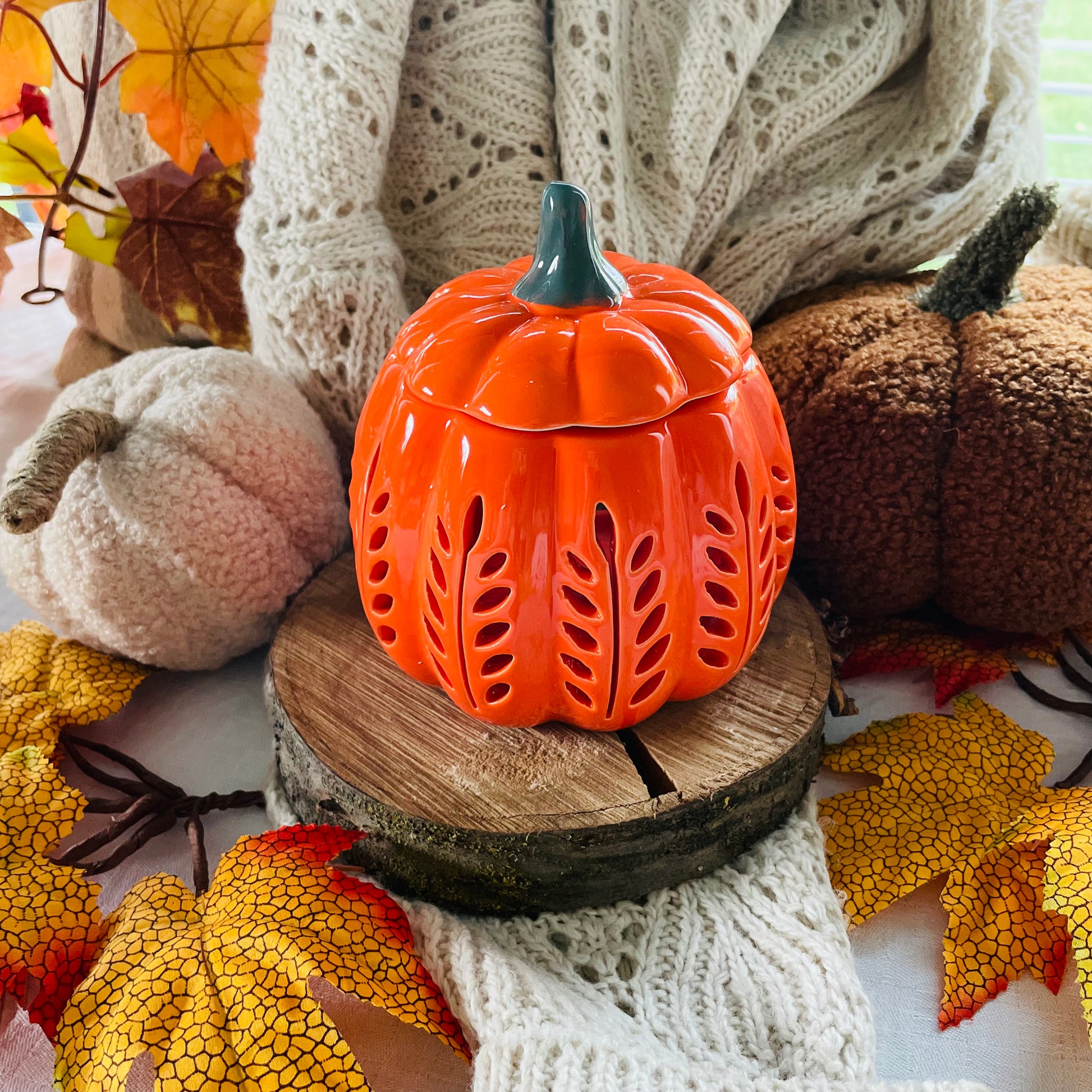 Voeg een vleugje herfstige elegantie toe aan je huis met deze oranje pompoenvormige wasbrander. Met uitgesneden details voor een gezellige sfeer tijdens koude avonden. Een perfecte wasbrander voor het smelten van waxmelts en vul je huis met rustgevende geuren van het seizoen.
