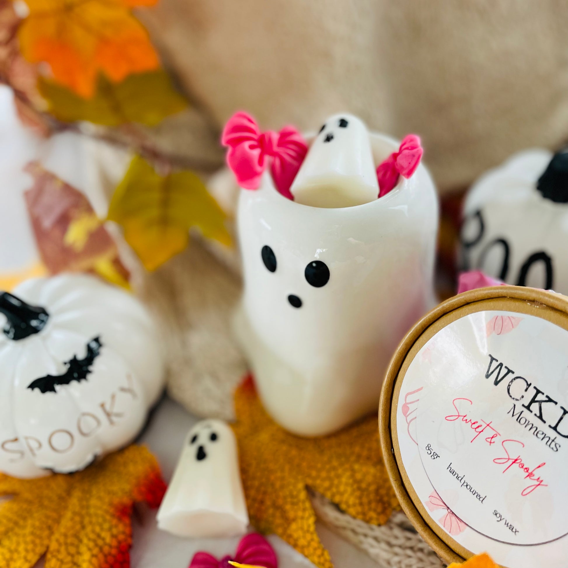 Voeg een vleugje mysterieuze magie toe aan je huis met deze spookvormige wasbrander! Plaats eenvoudig een standaard waxinelichtje in de achterkant en leg bovenop een waxmeltje. Terwijl het waxinelichtje zachtjes brandt, smelt de was en vult je ruimte met een subtiele geur, alsof een ondeugend spookje net langs is geweest. Let op: laat een brandende wasbrander nooit onbeheerd achter – zelfs de stoutste geesten respecteren veiligheid!