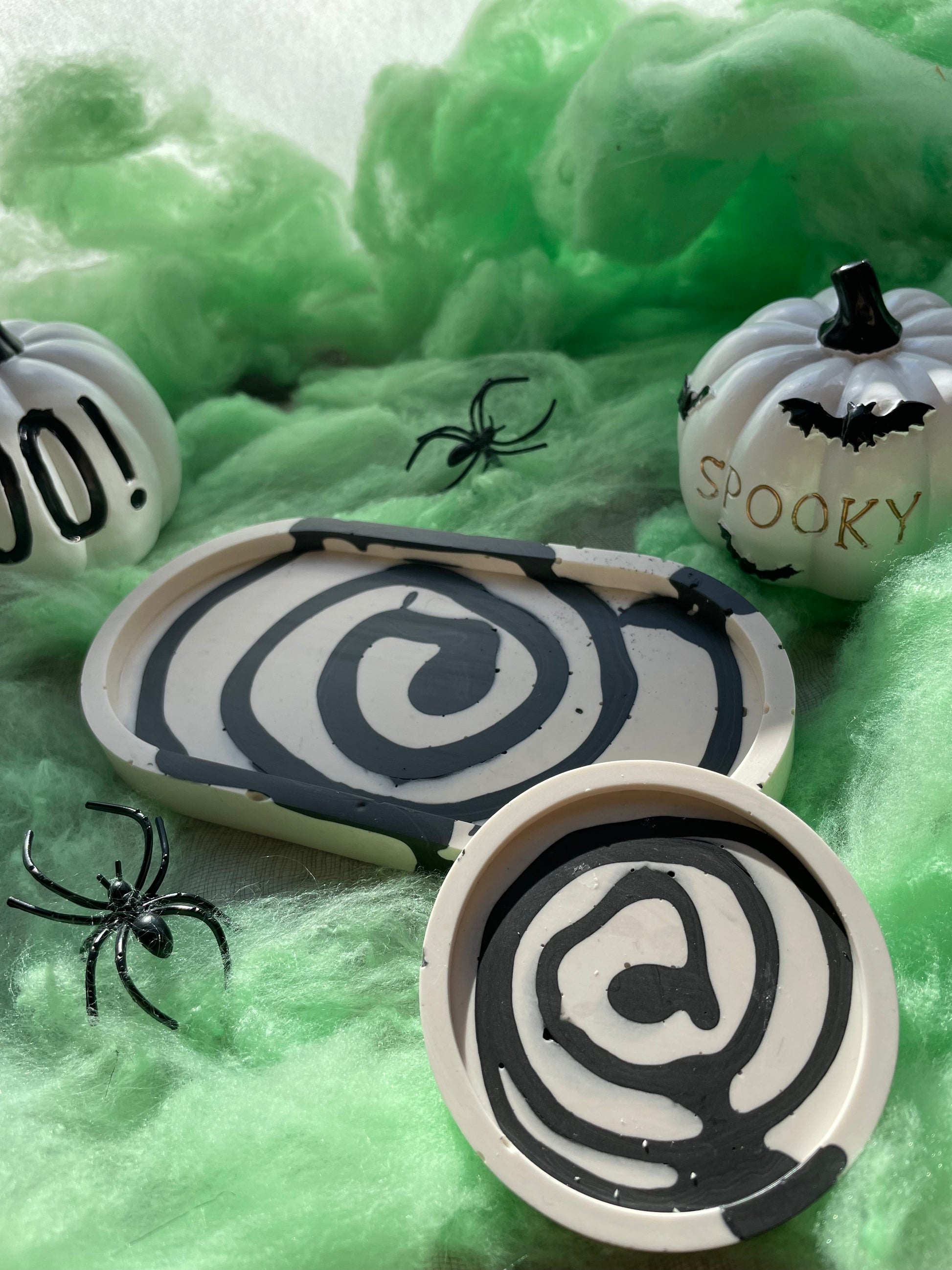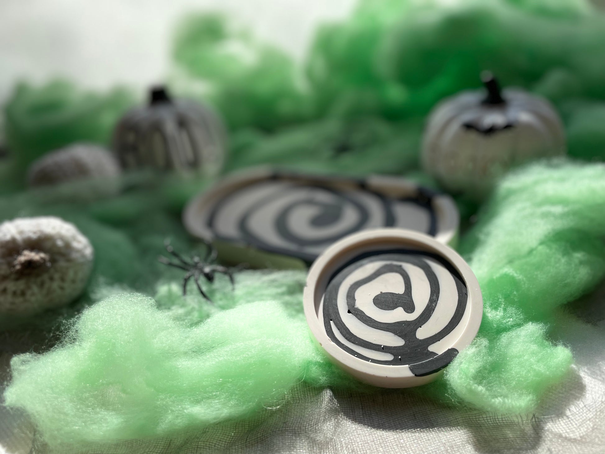 Voeg een vleugje speelsheid en nostalgie toe aan je interieur met onze unieke, handgemaakte schoteltjes geïnspireerd op het iconische Beetlejuice-thema. Elk schoteltje is met zorg en aandacht voor detail gemaakt, met een mix van zwart-wit strepen, mysterieuze patronen en subtiele accenten die verwijzen naar de wereld van Beetlejuice. Perfect voor liefhebbers van het excentrieke, het bovennatuurlijke en alles wat een beetje anders is.