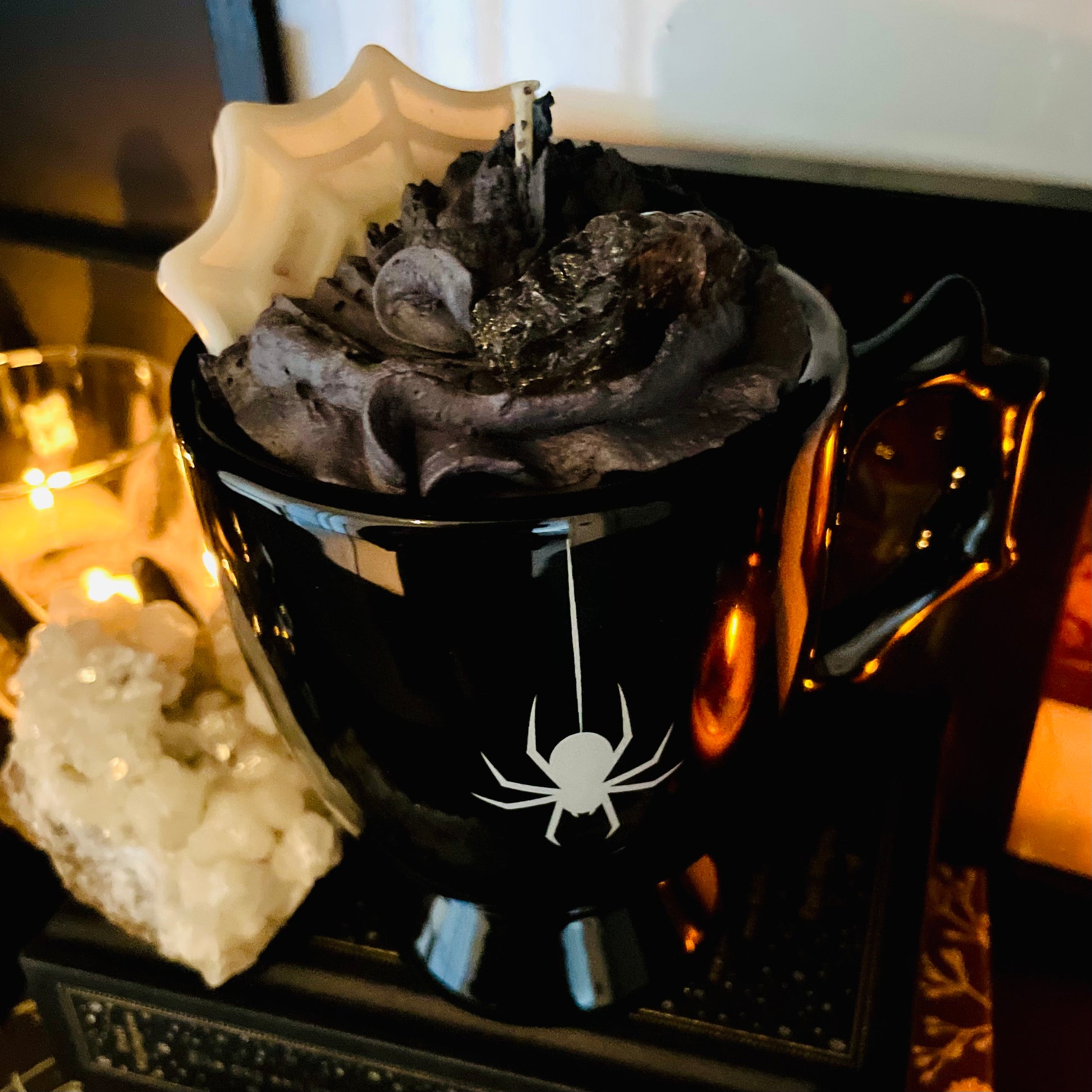 Een betoverende bloemensymfonie in een unieke gothic koffiemok, gedecoreerd met een sierlijke spin. Laat je zintuigen omhullen door een delicate bloementuin: fruitige topnoten van cyclamen openen de geur, gevolgd door het hart van pure witte orchidee die een rijk en elegant bloemenboeket onthult. Basisnoten van vanille en musk zorgen voor een warme, troostende afsluiting.