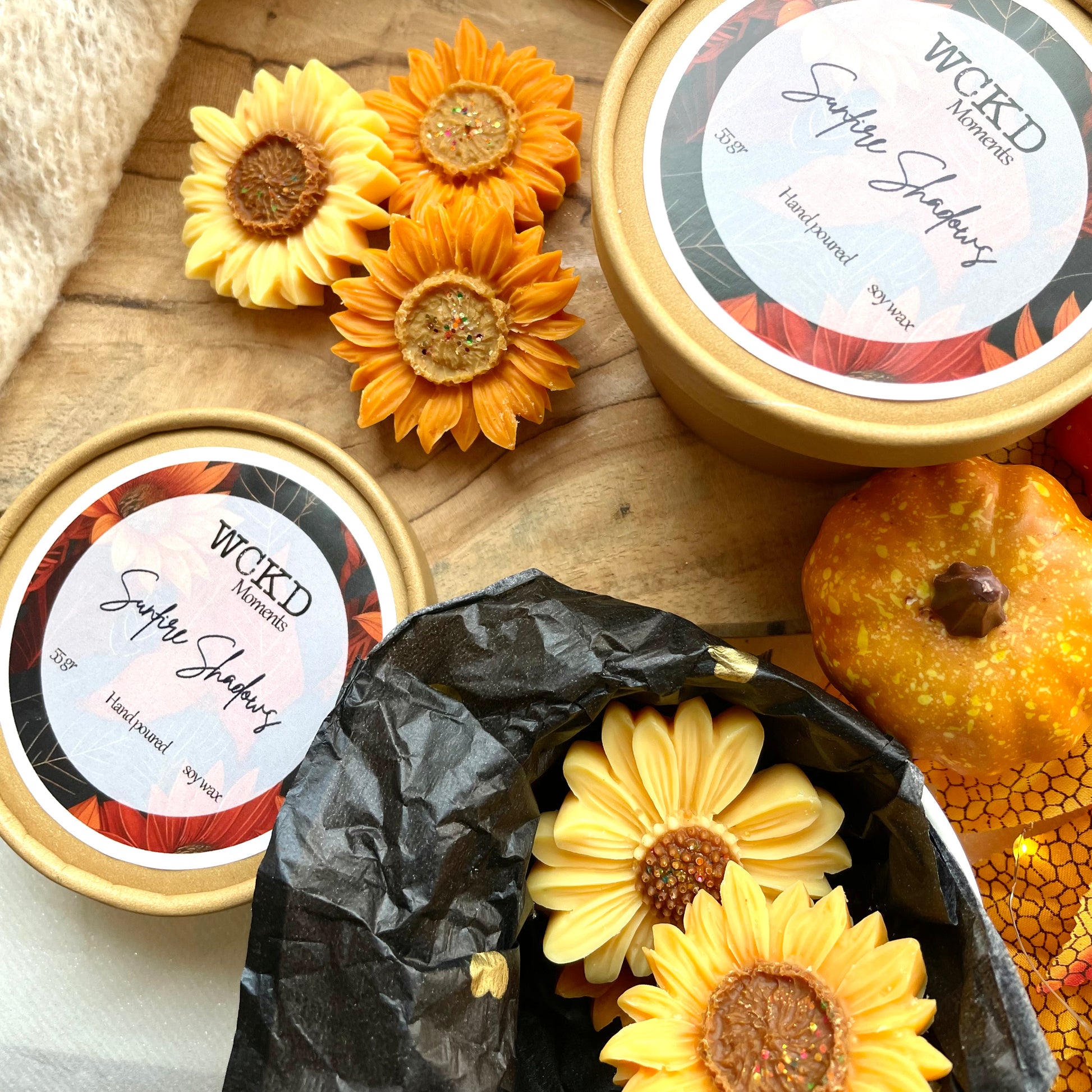 Breng de kracht en schoonheid van de natuur naar je huis met onze 'Sunfire Shadows' waxmelts. Deze elegante waxmelts, gevormd als zonnebloemen, bieden een unieke geurcombnatie van fris mos, robuust dennenhout, warm sandelhout en de aardse tonen van patchouli. De mix van mos en dennenhout geeft een verfrissende en bosrijke geur, terwijl sandelhout en patchouli een diepe, rustgevende warmte toevoegen. Het resultaat is een intrigerende geur die kracht en rust uitstraalt en een verfijnde sfeer creëert in elke ruimte.